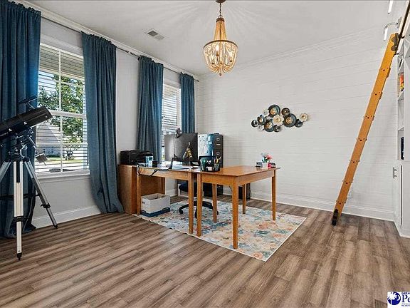 Located in Wessex, one of Florence’s premier neighbor- hoods, this custom-built home offers five bedrooms, four full baths and over 3,200 square feet of meticulously designed living space. The entry opens to a welcoming foyer and a stunning bonus room featuring custom-built-in bookshelves and a rolling library ladder, making it an ideal spot for an office, study, or creative retreat. Beyond the foyer, the home unfolds into a spacious open-concept layout. The living room, dining area and kitchen connect seamlessly under soaring 9’ ceilings, anchored by a warm fireplace. The kitchen is equipped with a plethora of cabinet storage, a large island and a stylish coffee/bar nook tucked just off to the side. The dining room is backed with expansive custom glass windows and sliding doors that bathe the home in natural light and provide a perfect backdrop for everyday living as well as entertaining. A full bedroom and bath on the main level add comfort and flexibility, whether for guests or multi- generational living. Upstairs, a generous den provides an additional gathering space, surrounded by four bedrooms. The owner’s suite is a private retreat with dual walk-in closets, double vanities, a soaking tub, a walk-in shower and a private water closet. This home also offers a two-car garage, attic storage and a fenced-in backyard for peace of mind. As part of the Wessex community, residents enjoy access to a neighborhood pool and playground, all while living within minutes of shopping, dining, and major interstates. Zoned for Lucy T. Davis Elementary, Moore Middle and West Florence High, this location combines a beautiful home with an unbeatable lifestyle. This is more than just a house—it’s the chance to live in one of Florence’s most outstanding neighborhoods. Schedule your showing today!