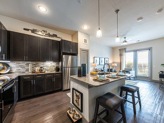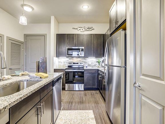 - Exterior features: BILT Rewards, Bicycle storage, Business Center, Granite Countertops*, Hardwood-Style Floors, High Ceilings, Ice-Maker, Kitchen Island*, Lawn, Major Employer Discount Program, Media Room, On-Site Maintenance, On-Site Management, Package Receiving, Poolside Entertainment Kitchen, Reserved Parking, Garages, and Storages Available, Satin Nickle Upgraded Fixtures, Stainless Steel Appliances, TV Lounge
