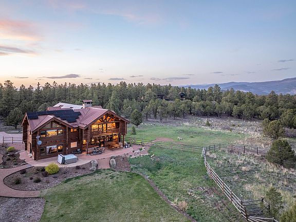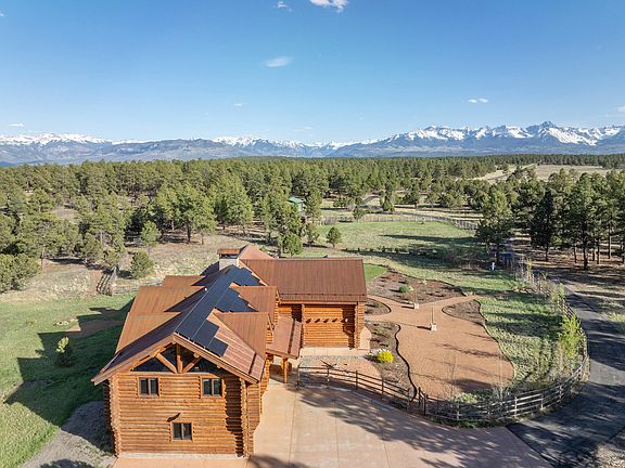 Welcome to Stagecoach Lodge, a stunning and ultra private 35-acre luxury retreat perched atop Log Hill Mesa in beautiful Ridgway, Colorado. This spectacular log cabin estate offers unmatched panoramic views of the Sneffels Range and the Cimarrons -- a rare vantage point that perfectly captures the magic of the San Juans.Spanning 4,760 square feet, the 4-bedroom, 3.5-bathroom home masterfully blends rustic elegance with modern comfort. The open-concept living spaces feature soaring ceilings, massive log beams, and walls of glass that bring the breathtaking mountain vistas and sunlight right into your home. Designed for both entertaining and peaceful retreat, the property includes expansive outdoor living areas, perfect for soaking in the hot tub under starry skies, gathering with friends and family, or hosting unforgettable events.