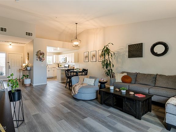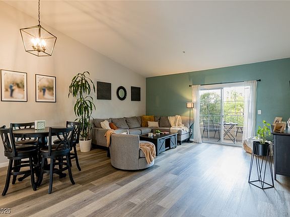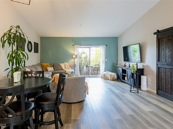 Beautiful Summerlin 2 Bed/2 Bath Condo inn Silver Pine Gated Community. This goegeous move-in ready / renovated condo features 2 spacious bedrooms, 2 full bathrooms & a large custom Barn Door into primary suite. Large 1248 sq feet unit, Vaulted ceilings & open floor plan. Balcony with covered patio! Recently upgraded baseboards & luxurious vinyl plank flooring throughout. Beautiful quartz countertops & stainless steel appliances in the kitchen. The primary bathroom features a shower/tub combo, new toilets, new fixtures with upgrades, and a large walk-in closet. Residents of Silver Pines enjoy access to a community pool, spa, & fitness center, providing a resort-like atmosphere right at home. Located near Summerlin Hospital, Boca Park, Downtown Summerlin, Las Vegas Aviators stadium, Red rock Casino, Red Rock Canyon, Tivoli Village, you’ll have everything you need at your fingertips, including shopping, dining, schools, and recreational activities.