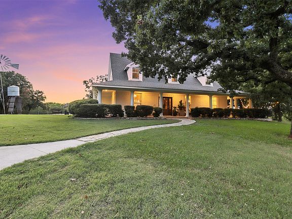 Come for the charm — stay for the views. Perched on a hill just outside Burleson city limits, this fully renovated Colonial Farmhouse offers 3148 sq ft of living space and the freshing renovated barn offers 2000 sq ft of living space. Here you will find arguably the best views Burleson has to offer. The main home features 3 bedrooms, 2.5 baths, and a kitchen any chef would dream of — complete with an oversized island, quartz countertops, and a commercial-grade refrigerator. Enjoy timeless character throughout, with crown molding, hardwood flooring, a gas fireplace, and many custom details. The reimagined floor plan also includes an upstairs sitting area and a cozy in-home library. The first-floor primary suite provides privacy and comfort with plush carpet, dual vanities, a spacious walk-in shower, and his and her closets - including a stunning wardrobe space perfect for any fashion lover. This home was built for entertaining — and so is the pool. The massive 15 x 25 ft saltwater pool is 9 ft deep, offering the perfect summer escape. The charming barndominium functions as full-time living quarters or a highly comfortable guest house. The upstairs hayloft features a dramatic window wall facing west — the perfect spot to watch breathtaking Texas sunsets. Inside, you’ll find a primary bedroom with sitting area, living and dining space, a full kitchen, washer, dryer connections, and a beautifully tiled bathroom. No details were overlooked here. Completed in 2022, the barndo includes updated HVAC, septic, flooring, appliances, and windows for worry-free living. The roof on both the main home and barn was replaced in June 2025. Enjoy daily views of your neighbor’s exotic animals and embrace peaceful country living — all just 5 minutes to shopping, 10 minutes to Chisholm Trail, and 30 minutes to Fort Worth. Take a tour and stroll the private trail toward the back of the property - you might just spot a longhorn, zebra or other exotic animal from the neighboring ranch.