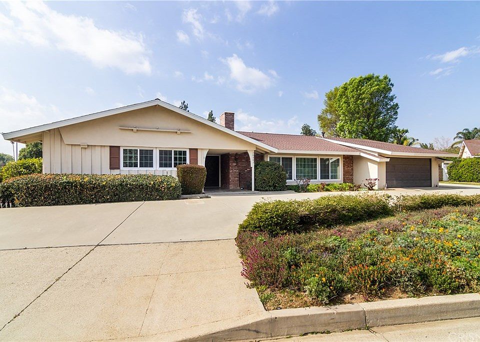 Located on a quiet, cul-de-sac, this spacious home boasts 6 bedrooms, 3 bathrooms with nearly 3,000 sf of living space on a sprawling 14,644 lot. The large circular driveway provides room for full RV access and room to park ample vehicles. Also there is room to build a ADU/Guest House. (SB 1069) The double-doors open to fomal entry which flows into the large living room with high beamed ceilings and floor-to-ceiling, brick fireplace. The family room showcases wood floors and dual pane sliding doors that lead to the covered patio. Spacious eat in kitchen includes breakfast room. The master suite includes an en-suite bath with dual sinks and roman style sunken tub/shower combo. The backyard is perfect for entertaining and outdoor fun with a large patio that is partially covered and sizeable lawn with ample lawn. Further features of the home include a 2-car attached garage, dual pane windows, newer roof (2018) and newer AC condenser. Great location near shopping, restaurants and recreation including The Village at Porter Ranch. Excellent opportunity to add your own style and design to this home with great bones.