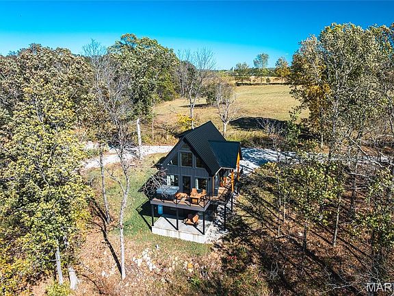 Welcome to Honey Hideaways, a beautiful 16-acre mountain retreat offering a perfect blend of seclusion, comfort, and outdoor adventure. Nestled on the ridgetop overlooking the valley below, this property is ideal for those looking for a quiet getaway, vacation rental opportunity, or personal escape surrounded by nature. The cabin sits in a peaceful setting with panoramic views of the surrounding mountains. Step outside to enjoy the bubbling hot tub, relax around the gas firepit, or explore the property’s scenic trails. The rolling terrain, mature timber, and active bee hives add to the natural charm of this one-of-a-kind setting. Inside, the cabin features a warm, inviting layout with large windows showcasing the incredible views. The main level includes a cozy living area with a gas fireplace, full kitchen with modern appliances, and a beautiful bathroom with a rain shower. A spiral staircase leads to the loft, where you’ll find a comfortable bedroom with a soaker tub and more of those amazing hilltop views. The lower level offers additional space with a small fitness area, perfect for staying active during your stay. Located just minutes from historic downtown Ste. Genevieve, local wineries, and several nearby parks, you’ll have no shortage of things to do when you’re not relaxing at the cabin. Whether you’re looking for a peaceful personal retreat or a proven short-term rental investment, Honey Hideaways offers a setting that’s hard to beat. For the past two years, Honey Hideaways has been operating successfully as an Airbnb. In 2024 alone, the property earned a 10% plus gross return and was booked an incredible 223 nights, showing its strong rental potential and consistent demand.