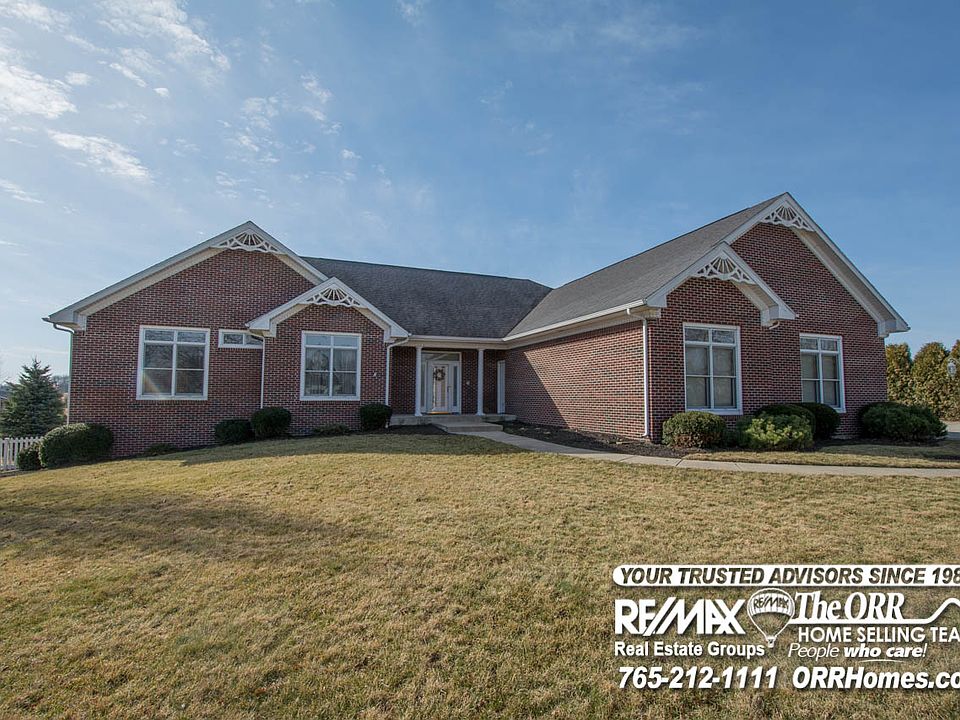 CUSTOM BUILT 2004 HOME LOCATED ON 8.61 ACRES. This immaculate home features an awesome floorplan you will love! Features of this full brick exterior home include family room with fireplace open to kitchen and dining area, a formal living room, and original woodwork throughout. The walk out finished basement is a must see, great space for entertaining and has a 2nd kitchen, 2 extra bedrooms, and new carpet in 2016! The master suite has a double tray ceiling, his and her closets, and double vanities in the bath. Master bedroom also has access to an upper deck with an outstanding view of the property. The large driveway leads to an attached 3-car garage plus a unique 1 car attached garage/storage area at back of house. Some exterior features of this home include an in-ground heated pool, pole barn, creek with a bridge, and two ponds. This home is located in Yorktown School District on a wonderful country setting close to town!