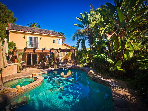 Completely Remodeled Fantastic High-Quality Custom Built Mediterranean Estate with many European Details, perched behind Gates. It was designed with Feng Shui in Mind. High Ceilings, Large Rooms, Great Open Kitchen with Large Eat-In Breakfast Area. Chef's Kitchen with State-of-the-Art Stainless Steel Appliances that include a WOK and Commercial Ventilation Hood, Viking Range, Sub Zero Refrigerator and Very Large Center Island. Custom Anderson Windows and French Doors throughout ( inside wood/outside vinyl ). Large 500+ sft. Office / Guest Suite with Bathroom could be a Screening Room / Movie Theatre, it has a separate entrance. There is a Pool House / Casita in the Rear of the Property. 1st floor with Formal Living and Dining Room, 2nd Floor with Great Master Suite w/ balcony, custom designed walk-in closet and large Master Bathroom with huge Jacuzzi, Custom frameless Glass Shower, separate room for WC and Bidet. Another Bedroom and Bathroom Upstairs and 2 More Bedrooms with their own Bathrooms Downstairs. Large Outdoor, Covered Living Room with full Barbecue and Kitchen area that features Another 2nd professional WOK and a BBQ hooked up to Natural Gas. Outside Sink has Hot and Cold Water. There is also a T.V. and an Outside Natural Gas Heater Mounted Outside. Spectacular Fully Landscaped Outdoors with Brand New Tropical Resort Saltwater Pool and Jacuzzi and Solar System to heat the Pool Water. This Backyard is an Entertainers Dream!!!! Sound System and Water Filtration throughout the House. Home has a Security Alarm System. Extraordinary Custom Stone, Wood and Tile Floors throughout ( no carpet ). Large Grassy Area as well. Large Grapefruit, Orange and Fig Trees. Spectacular Curb Appeal with over 100 Feet of Frontage. Home has 3 Custom made Rod Iron Gates, one is a Remote Controlled Motorized Sliding Gate for the Cars, one is the Main Pedestrian Gate that opens and communicates via the Professionally Installed Phone System and there is also a Separate Service Gate on the North Side of the Property. Professionally Installed Panasonic Phone System is Hard Wired throughout the Entire Home. Home is also Fully Hardwired for Data, Internet and T.V. Have it all, a Custom Built Home with separate 500 sft+ office or screening room and a large Resort Backyard. Neighborhood Description Cheviot Hills