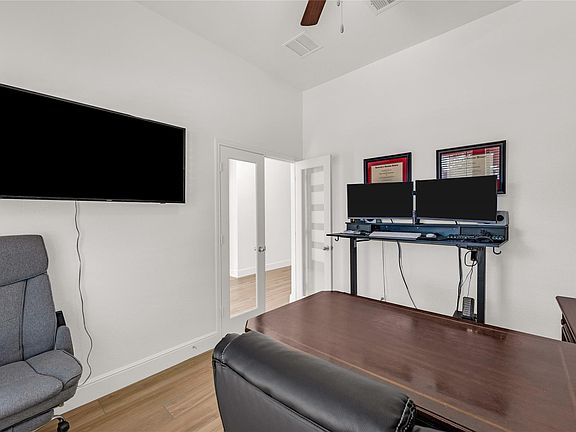 Welcome Home at 10503 Sparkling Stream Trail! Perfectly nestled in a quiet cul-de-sac. This two-story home offers 4 bedrooms, each with walk-in closets, custom shelving and drawer space, along with 4.5 bathrooms. Enjoy a stunning open-concept kitchen, living space & a private office. The first floor also includes a primary bedroom with an ensuite bathroom & a second bedroom with an ensuite. Also included are built in speakers in the primary bedroom & bathroom, living room & outdoor patio. Upstairs, you have a game room, media room, two bedrooms, & two full bathrooms. Outside you’ll find your large covered patio, ideal for entertaining and comes complete with an outdoor kitchen, including a brand new gas grill. Recent updates include: Solar window tint on all back windows, fully remodeled second bathroom, new tile flooring throughout the first floor, upgraded carpet throughout the second floor & fresh paint throughout the entire home. Schedule your private showing today!