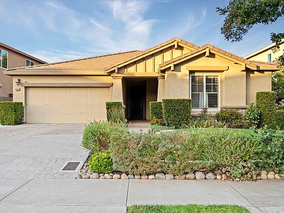 Stunning contemporary Craftsman-style single-story home with 3 bedrooms plus a den, thoughtfully designed for comfort and functionality. The gourmet kitchen features a huge island, granite countertops, stainless steel appliances, and plenty of storage. Rich cherry built-in cabinets and bookshelves add warmth and character throughout. Enjoy wood flooring in the main living areas and tile in the entry, halls, bathrooms and plush carpet in the bedrooms. Plantation shutters throughout provide elegance and energy efficiency. Step outside to a stamped concrete patio and low-maintenance backyard perfect for entertaining. owned solar panels, and a Tesla charger for sustainable living. move-in ready and waiting for you!
