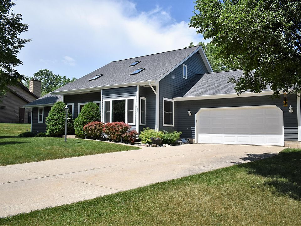 An incredible opportunity exists in this striking contemporary home! Boasting a new remodeled kitchen with new black stainless steel appliance and solid surface counters, this gem of a home also features a spacious living room w/vaulted ceiling & skylights, main floor primary bedroom w/private bath & WIC, two bedrooms & full bath up, and a half bath on the main. Lower level is finished with a large rec room & additional flex room. Enjoy the backyard from the tiered deck and patio, and cool off with a refreshing dip in the pool! Garden shed w/lawn tractor included. Newer roof, main floor windows, furnace & central air, & fresh exterior paint. Expand your yard via a share of included ownership in the West Calumet Road Association and enjoy 27 acres of common area space & buffer. A must see!