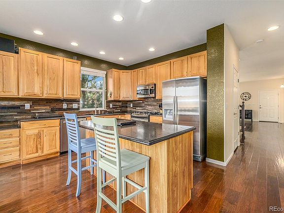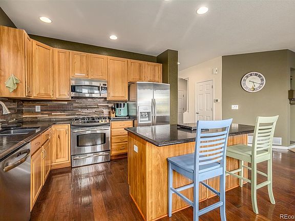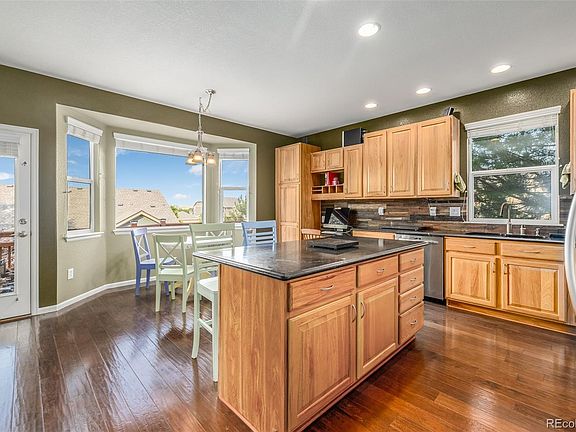 This beautiful Ryland home has 5 bedrooms, 4 baths, and over 4,300 Finished Square Feet that includes the In-Law suite in the finished Walk-Out basement. The home also features a spacious kitchen with leather finish slab granite counters, 42" hickory cabinets, stainless steel appliances, an island, built-in desk area, eat-in space, and a breakfast nook with bay windows. The main floor also includes a roomy family room, formal living and dining rooms, a powder bathroom, and a private office. Upstairs you'll find the vaulted primary suite with en suite 5 piece bath and a huge walk-in closet, a large loft area, 3 more bedrooms, the laundry room, and a full secondary bathroom. The finished walk-out basement previously mentioned has a full kitchen with slab granite counters, stainless steel appliances, lots of hickory cabinets, and eat-in space, as well as a family room, office space, a bedroom, a 3/4 bath, and a laundry room. Located in the desirable Chatfield Farms West neighborhood this rare home is just minutes away from the S. Platte River, Chatfield Sate Park, trails, parks, dining, and shopping. Come see it today!