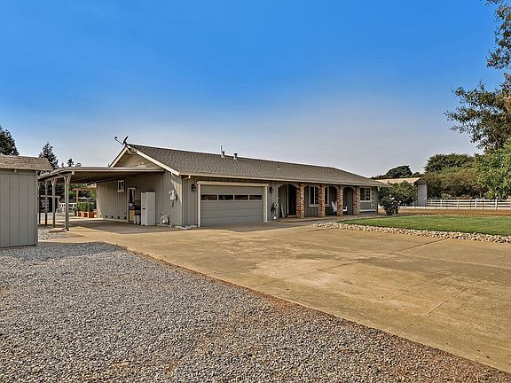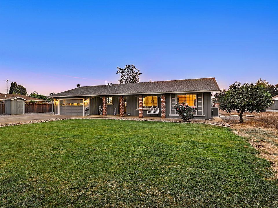 Welcome to your own private country dream. This impeccable single-level, ranch-style home is 4 bedrooms, 3 bathrooms, approximately 2,200 square feet & is sitting on over one acre. The large shop has tons of space for storage, and includes a full guest unit with a kitchen and full bathroom - perfect for renting out to generate extra income. The main home is light and bright with so many windows and an easy flow floor plan. The family, dining and living rooms are are extra spacious. The primary bedroom has a beautiful updated bathroom with dual vanities and a walk-in closet. Other features include new flooring, fresh paint, shiplap walls, vaulted open-beam ceilings, and a beautiful quartz fireplace. This home is settled down a private road with a beautiful view where you can enjoy relaxing on the front porch swing watching the beautiful country scenery. Outside also includes an additional shop, RV storage, fire-pit, shaded patio, and plenty more space! This home is love at first sight!