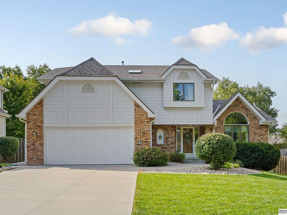 Beautifully maintained two story home in Millard! Greeted with a lovely entry way with loads of closet space. Tall cathedral ceilings in the great room and plenty of natural light. Stainless steal appliances, granite counter tops and neutral backsplash are a few reasons your guests will gather in this amazing kitchen. Spacious living room area featuring a wet bar, built in bookshelves and a gas log starting fireplace. Huge primary suite that has an amazing whirlpool tub and double sink vanity. Amazing backyard completed with a privacy fence and Trex composite deck. Home has been touched up with fresh paint and incredible 50 year heritage roof! Take a your personal tour today!