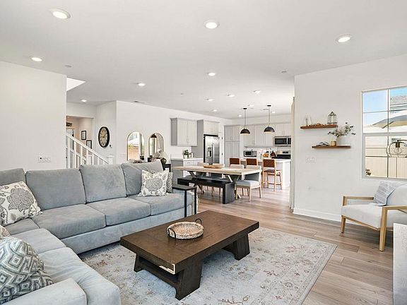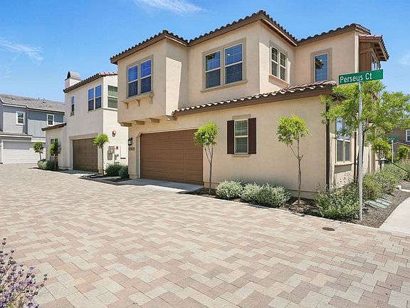 Welcome to this stunning home in the coveted Aventine community, perfectly positioned on a premium corner lot with no neighbors to one side or behind—offering privacy and beautiful views of the mountains above Sweetwater Reservoir. Built in 2022, this light-filled home features high 10-foot ceilings and an open-concept layout that seamlessly blends the spacious living, dining, and kitchen areas—ideal for everyday living and entertaining. The large kitchen is a true centerpiece, featuring upgraded finishes, pendant lighting, and ample room to gather. With four generously sized bedrooms—including one conveniently located on the main floor—plus an upstairs laundry room, this layout offers both flexibility and function. Upstairs, a spacious loft provides the perfect bonus area for a home office, playroom, media space, or additional lounge. Upgraded flooring throughout adds a modern, high-quality feel, and the fully owned solar keeps energy costs down. The finished backyard features beautiful porcelain pavers, and the garage has been thoughtfully outfitted with custom cabinetry and storage racks. Set in the heart of Spring Valley, this home offers the perfect balance of natural beauty and a strong sense of community. The area is known for its parks, museums, and access to open spaces like Dictionary Hill Preserve and Sweetwater Regional Park. With a peaceful atmosphere and an abundance of nearby outdoor activities, it’s a truly desirable place to live.
