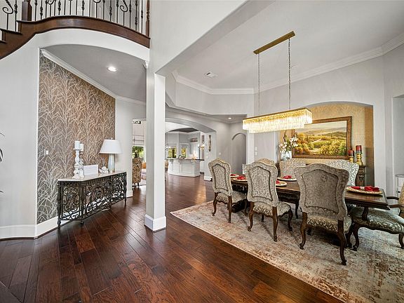 Discover Texas-sized, resort-style living on a rare lakefront lot in the prestigious gated enclave of Cinco Ranch. This custom 5-bedroom home features fresh interior paint, a modern redesigned kitchen, and all-new wood flooring in every bedroom. Dramatic interiors include a soaring cathedral-ceiling family room with sweeping lake views, elegant designer lighting, and a warm open layout. The main level offers a serene primary suite and a private guest suite. Upstairs provides three spacious bedrooms, a large game room with balcony, and a media room. Step into your private lakefront oasis with a stunning pool, fire bowls, spa, outdoor kitchen, stone fireplace, and basketball court. A 4-car garage and abundant storage complete this exceptional luxury residence.