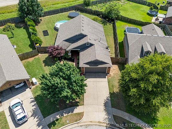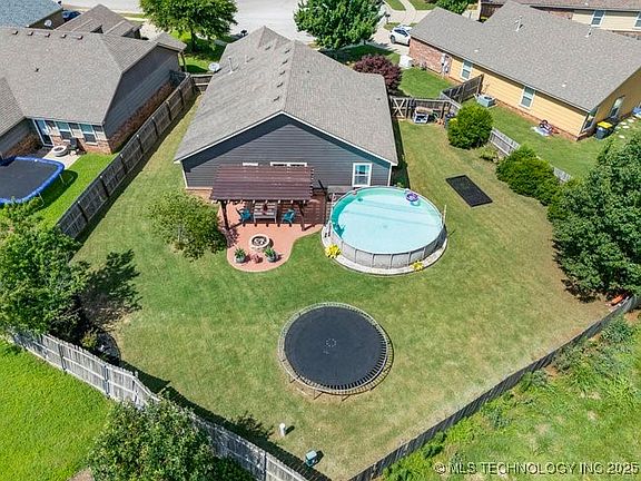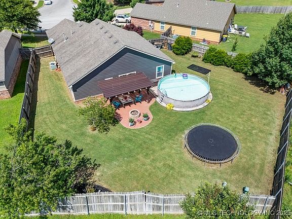 Welcome to this charming and well-maintained 3-bedroom, 2-bath home nestled in the highly sought-after Southern Reserve neighborhood in Jenks West School District. Situated on a quiet cul-de-sac, this one-of-a-kind property offers both comfort and convenience with a handful of thoughtful updates. This split floor plan provides privacy coupled with plenty of space to spend family evenings next to the cozy fireplace. The backyard is made for entertaining and family fun, featuring an above-ground pool, trampoline, and a spacious extended patio with an extravagant pergola- perfect for relaxing evenings. Enjoy the community's abundant amenities designed for all ages, including two oversized stocked ponds, scenic trails, dog park, basketball courts, pool and playground! A true gem you don't want to miss!