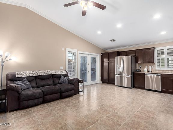 LOCATION ALERT!! Located just minutes from the excitement of Westgate, Cardinal's Stadium, walking distance to Camelback Ranch spring training home to Dodgers and White Sox, Desert Diamond Casino, and a wealth of dining, shopping, and entertainment options, this home is ideally situated for those who enjoy an active lifestyle. This home features a newer A/C, water softner, and brand new flooring, with upgraded plantation shutters throughout. The updated kitchen features top of the line stainless steel appliances, granite countertops, backsplash, and plenty of storage space, perfect for everyday meals or entertaining. The living room is cozy and perfect for relaxing, while the generous backyard provides a private retreat with a covered patio, ideal for outdoor gatherings. With easy access to major freeways, you're just a short drive from everything you need, from shopping and dining to sporting events and entertainment. Whether you're a sports fan, a foodie, or someone who loves the convenience of being close to everything, this home offers the perfect blend of location, comfort, and style. Don't miss out on this gem!