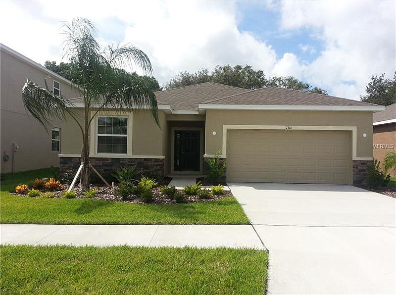 New Constuction!! NO CDD!! This 4 bedroom 2. 5 bath home provides you wilth a breath taking view of the pond. In addition to the open living spacee it features 18' tile throughout the living areas and comes tastefully decorated with granite kitchen countertop, 42' cabinets stacked and staggered complete with stainless steel appliances. Spacious owner's suite with his and her walk in closet, garden tub and separate walk-in shower. The home allow spacious out-door living with a large covered lanai. Seller is offering CLOSING COST assistance. Make an appointment today! Photos are of model home only. Additional color schemes and features are available.