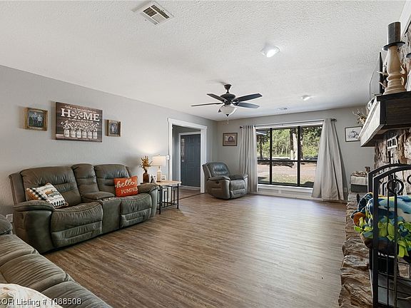 Welcome to country living with surrounding mountain views and room to breathe. This home sits on 5 fenced acres with panoramic views of Poteau and Sugarloaf Mountains. Come and relax in this modern farmhouse vibe-styled home and expect comfort. Features 2380 square feet with 4 bedrooms and 2 baths. The oversized master has an expansive en suite for your comfort and the master could also double as an office space. Native rock fireplace in the living room and eat-in kitchen with large island. The 2nd bedroom is oversized and can easily fit 2 full beds with ease. The exterior was set up for goats and could be used by the equestrian enthusiast. An awesome 40X70 storage barn that has concrete flooring and could be set up with stalls and converted to paddocks. This is a great location for your family and hobby farm. This home has recently been updated and was done with beautiful grey neutral tones. New luxury vinyl throughout and features great sliding barn doors. Perfectly set up with a backyard fire pit for these cooler fall evenings. Come take a look today and let's get you moved before Christmas!!!