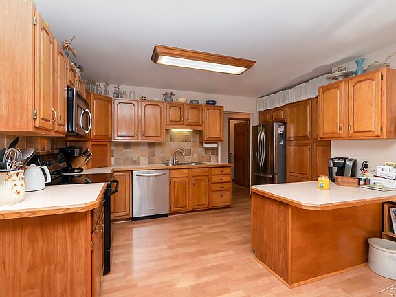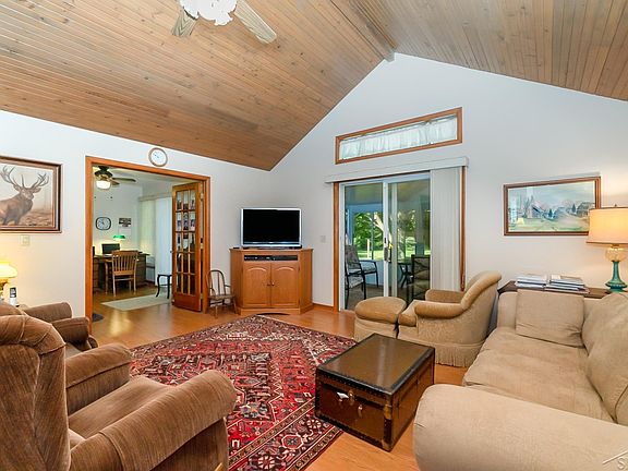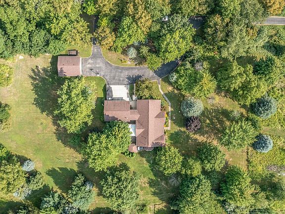 14.99 acres of wooded land with a beautiful home, 3 car heated garage (24x32) and a pole barn (24x28) with concrete floors. The home has been well maintained with many updates, including the addition of a Generac natural gas generator, newer roof, newer furnace/central air, sump water backup system, paved driveway and more. The sellers are down sizing and therefore they are leaving 3 refrigerators, a freezer, pool table, gun vault, etc. And there's more: three large bedrooms up and one down, two full baths up and one down, one office/sun room up and one office down, finished basement, beautiful wood vaulted ceiling in the great room, wonderful enclosed porch, a mud room and large kitchen and dining area. The house is not in a flood plain.