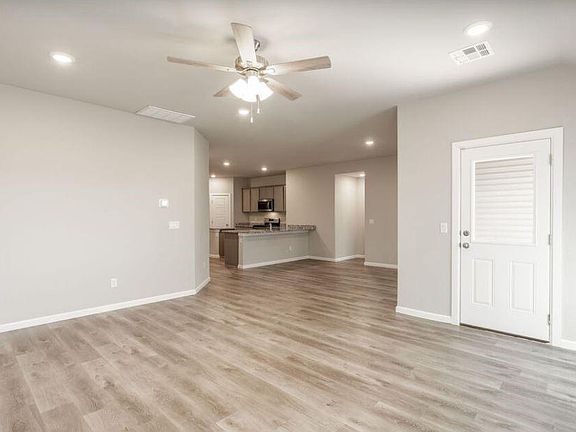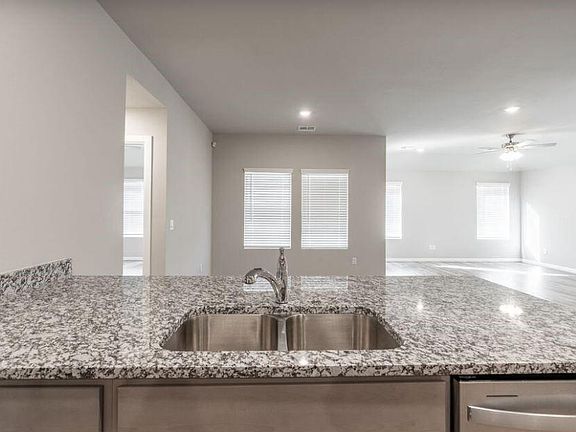 The Travis plan is a single-story, 1,949 square feet, 5 bedrooms, and 2 full bath home. The home features an open layout with a huge central family room and kitchen. The kitchen has beautiful features that include Whirlpool Stainless Steel appliances, a large walk-in pantry, and a gas range. The bedroom one suite is in the back of the house for complete privacy. Ensuite features a spacious bathroom and a large walk-in closet. This home features “Home Is Connected” base package which includes the Alexa Voice control, Front Door Bell, Front Door Deadbolt Lock, Home Hub, Light Switch, and Thermostat. Additional features include a full sod yard and a covered patio. 2" faux wood blinds, Full fence with steel poles and irrigation system included.
