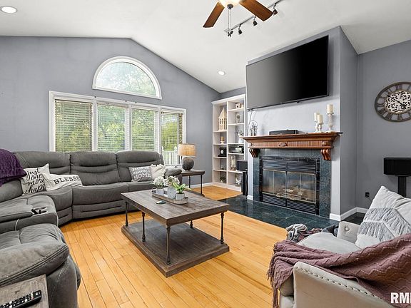 Welcome home to this beautiful lakefront retreat with private dock on quiet cul-de-sac! Feel like you are on vacation everyday! This 4/5 bedroom 3.5 bath ranch home offers over 3400 square feet of living space. Perfect for the growing family. Gorgeous hardwood flooring, fireplaced living room with cathedral ceilings, main level office, formal dining room, primary bedroom with walk in closet and jetted tub. 2 additional bedrooms on the main level. Large kitchen with island and an abundance of cabinet space! French doors leading out to the beautiful composite deck overlooking the lake. Main floor laundry is shared with 1/2 bath. Basement features walk out with large family room, full bath, 2 bedrooms (1 w/egress) with walk in closets, craft room, and large workshop. 2 stall garage. Updates include retaining wall and gorgeous stamped concrete patio down by the lake, new roof 2023, HVAC and water heater 2022. Enjoy all of the amenities Lake Camelot has to offer including 2 stocked lakes, pool, clubhouse, tennis courts & playground!