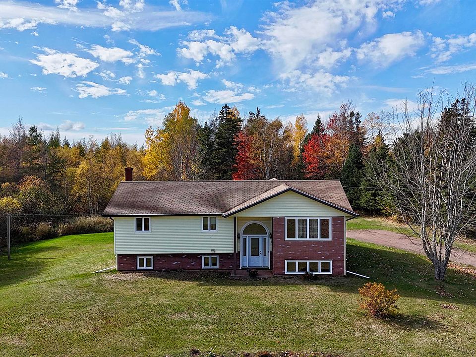Welcome to this well-maintained split-level home, built in 1987 using lumber harvested directly from the property. Offering 3 bedrooms and 1 bathroom, the home sits on a private and peaceful 64-acre parcel—which includes both the beautifully treed 4-acre lot surrounding the home and an adjacent 60 acres of woodland with approximately 457 feet of waterfront. Inside, the 2,064 sq. ft. layout features an open-concept eat-in kitchen, convenient main floor laundry, gorgeous hardwood floors, and a bright, welcoming foyer. A heat pumps ensures efficient year-round comfort, and the insulated, partially finished basement is framed for additional rooms with plumbing roughed in for a second bathroom—perfect for future expansion. Step outside to enjoy the brand-new deck, ideal for summer barbecues or unwinding with friends and family. The additional 60-acre forested parcel offers a mix of hardwood (Red Maple, Poplar, White Birch) and softwood (Black Spruce, White Spruce, Balsam Fir), most of which was harvested around the year 2000 and is now considered an immature forest—full of potential for personal or recreational use. Whether you're looking for space, privacy, or the beauty of nature at your doorstep, this property offers a rare combination of all three.