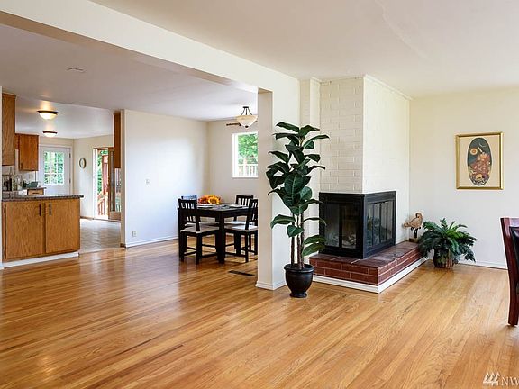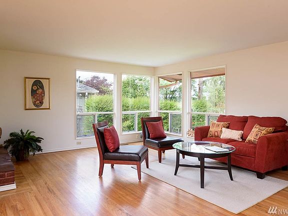 This mid-century rambler has wonderful privacy up on the ridge of Lakeridge Park overlooking trees to the west & partial views of Lake Washington. The spacious main floor layout incl a living room w/floor to ceiling windows, wood-burning fp, dining area, & a large kitchen w/french doors leading to a huge carport deck. On the mezzanine level there is a powder room & access to the yard. On the lower level you'll find a finished daylight bsmt w/pellet stove, kitchen, full bath, bdrm, & laundry room