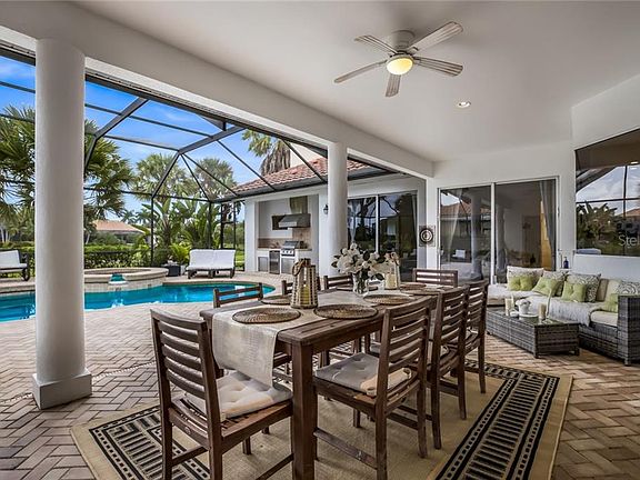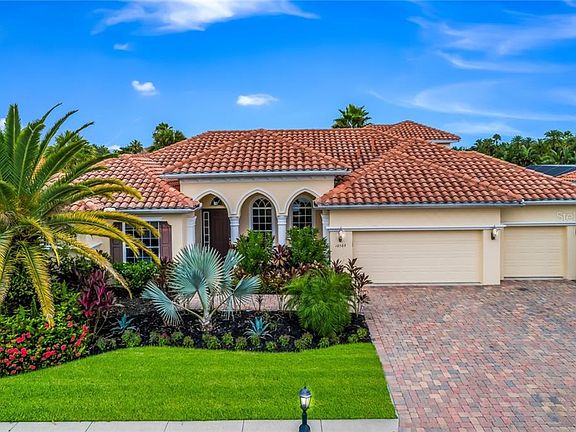 Welcome to this beautiful home in Waterlefe Golf and River Club. Step into this open floor plan with 4 bedrooms, 3 baths, and a huge bonus room that could be your 5th bedroom. Your kitchen has Corian counters, stainless steel appliances and hardwood cabinets all overlooking your two living rooms as well as a separate dining room. Both living rooms have full sliding glass doors that open up to the inground pool with an outdoor kitchen. This includes a massive covered lanai which is great for entertaining. The master bedroom has plenty of room for an extra seating area and also has access to the pool and lanai. Includes two walk-in closets, full tiled shower and separate tub. 3 more bedrooms on the first floor and the bonus room on the second floor. New AC installed on first floor. Enjoy the beautiful views of the famous 18th hole and waterfront where you can see boats come and go. Waterlefe community has a professional 18-hole golf course, full marina for all your boating needs on the Manatee River, bar and restaurant, incredible community pool, fitness center, and much more. Don't miss out on this opportunity and schedule your showing today.