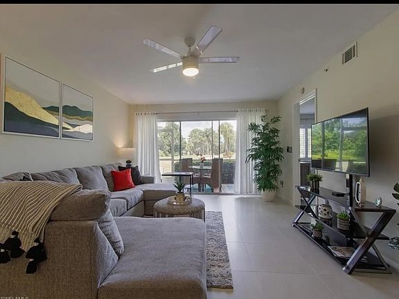 Newly updated, clean ground floor condominium in secure gated community. Unit is fully furnished with an updated living room, 2 bedrooms and 2 bathrooms. Kitchen is freshly updated with stainless steel appliances, granite countertops and newly refaced cabinetry. Beautiful lanai view of golf course. Condo can be rented with golf privilege if desired. Amenities include community pool and pickleball courts, along with clubhouse dining, fitness center and tennis courts. This location is 10 minutes from downtown Naples and close to public transit, dining and shopping. Just minutes from the beautiful sandy beaches of Naples, Florida. Owner pays for water and cable tv; Renter is responsible for Electric. Security Deposit and last month's rent is due at signing. No pets allowed and No Smoking allowed. Long term renters are preferred. Unit available May 1, 2025. Unit comes with designated, covered parking space. Guest parking.