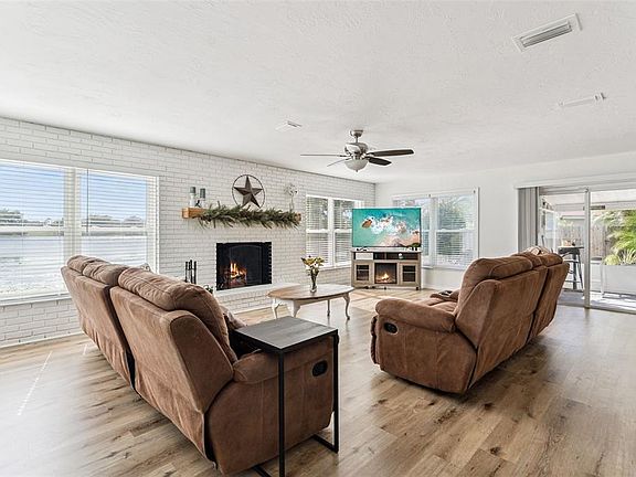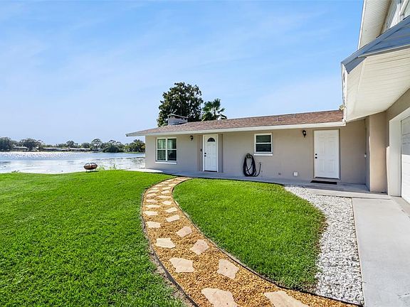 Each evening you can watch a stunning sunset over Clear Lake from your living room in this beautifully renovated 4-bedroom, 3-bathroom pool home located on Eva Street. Situated on a large cul de sac with plenty of room to park all your Toys! As you enter into this fully renovated home you will be greeted with lots of natural light, stunning lake view and a wood burning fireplace. This home features luxury vinyl flooring throughout all the rooms. Adjacent to the living room you will find the dining room and updated kitchen with stainless steel appliances, granite countertops and modern cabinets. Sliding glass doors lead off the dining area that lead to the screened patio and the spacious fenced private pool area. The two primary bedrooms are on the main level and the additional 2 bedrooms are upstairs with a Jack and Jill bath. This home has been fully cosmetically renovated with new doors, lighting, remodeled baths, kitchen and replumbed, 11 windows replaced, new insulation and siding. Indoor large laundry room and a 2 car garage. Bring your fishing poles, canoes, paddle boards and more and enjoy this beautiful lake. No HOA! Call for your private showing today.
