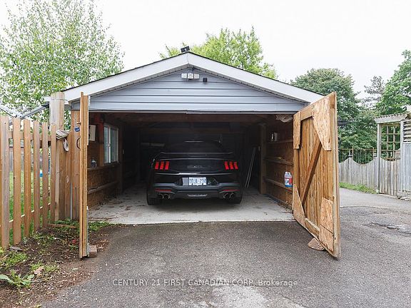Country in the city! Massive 300' deep lot to enjoy all your summer activities. Charming Cape Cod style home offers lots of character! Remodeled interior with updated kitchen and baths on main and lower levels. 4 bedrooms, woodstove in large rear mudroom, separate entrance could make an ideal rental suite if desired. Vinyl windows, furnace replaced aprox. 5 yrs ago. 10' x 12' man cave at rear of garage with woodstove and most furniture in it included! Enjoy the large above ground pool, covered patio. Large basket ball court in rear of lot, fully fenced lot. Located close to the 401, shopping, buses and schools all nearby. Main floor has newer laminate flooring. Large bright lower level recreation room with full bath and laundry plus lots of extra storage!