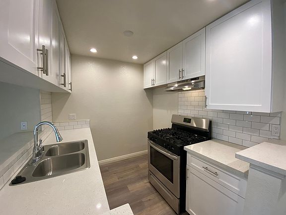 This must see 2 B/R+2 B/R front unit with balcony is located on the 2nd floor. Has newer cabinets and quartz counterparts in kitchen & bathrooms, vinyl flooring throughout the unit. Amenities in the apartment include stainless steel appliances (dishwasher, gas stove, hood), recessed lighting in kitchen, L/R & D/R, and central A/C. The building's amenities include hot and cold water paid by Landlord, on-site laundry facility, elevator, 2 subterranean parking space. We have all the conveniences of home, walking distance to transit, school, library, and supermarkets and freeway. Minimum 1 year Lease
