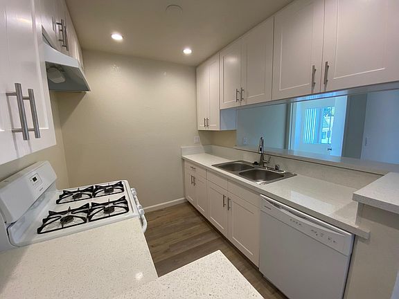 This must see 2 B/R+2 B/R back corner unit with balcony is located on the 3rd floor. Has new vinyl flooring throughout the unit, new kitchen and bathroom cabinets with quartz countertops and plenty of closet space. Amenities in the apartment include, new recessed lighting, dishwasher, range, hood, central air & heat, 2 subterranean parking space. Hot and Cold water paid by Owner. The building's amenities include on-site laundry facility and elevator, We have all the conveniences of home, walking distance to transit, school, library, and supermarkets and freeway.