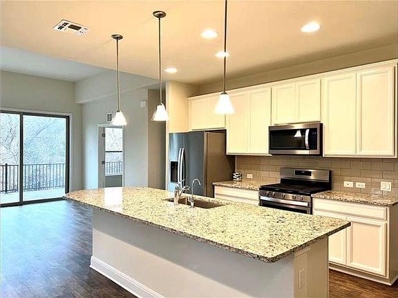 Open-concept floor planStainless steel appliancesGranite countertopsNatural lightModern kitchenWalk-in closetPrivate bath