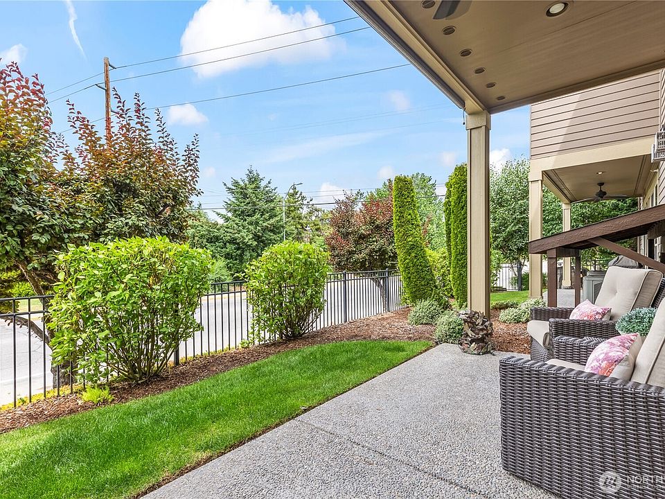 Enjoy stunning finishes in this well appointed ground level condo. This home welcomes you with light bright living spaces. Open floor plan offers gorgeous kitchen with granite counters, huge island, stainless appliances, pantry and gas range. The large living room has a beautiful fireplace. Two spacious bedrooms including a nice master suite with walk-in closet, master bathroom with double sinks, walk-in tiled shower and granite counters. Additional full bathroom has tiled tub/shower and nice finishes. This home also has a large laundry room with tons of storage. Outside you'll enjoy the nice patio with gas grill hookup, mature landscaping and city views. Detached 1 car garage and additional parking make this the perfect condo!
