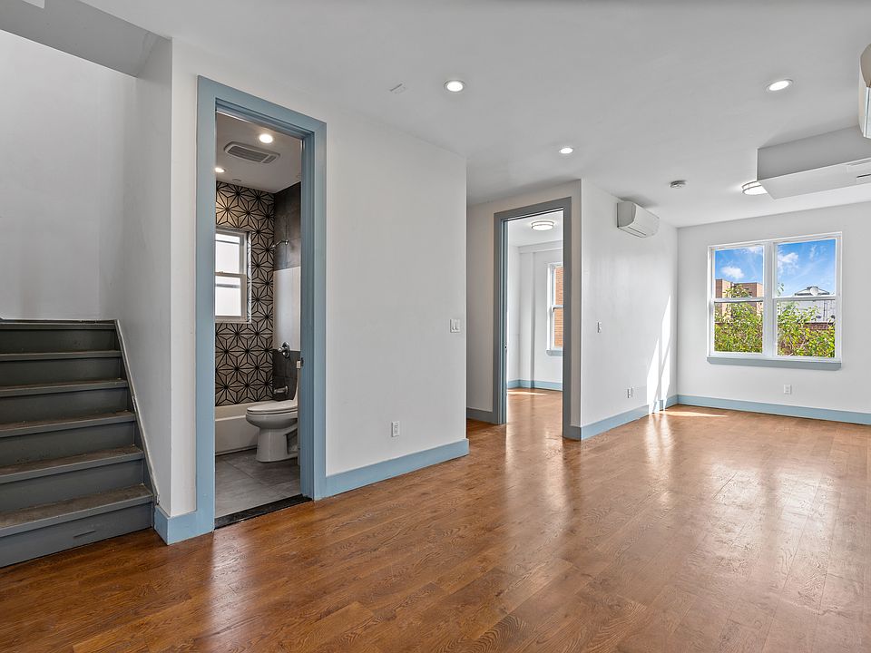 Bright and modern 2-bedroom duplex featuring a private outdoor space, 2 bathrooms, and oversized windows. Wood-style flooring throughout apartment. Updated appliances and fixtures. Close to transit, shops, and local amenities.