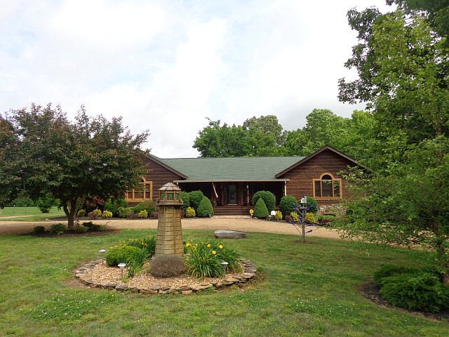 Awesome custom built log home on 135+- acres and only minutes from KY lake. The home features vaulted ceilings, a gas log fireplace, an open floor plan, a back up natural gas generator, an unbelievable kitchen with tons of beautiful cabinets that have slide out shelves, lazy susans in every corner, and granite countertops. The full poured concrete basement has all the plumbing stubbed in for another bath and an extra 2 car garage. The insulated 40 x 60 shop building has natural gas heat, and high side walls and door for an RV. The land has trails throughout, food plots and some mature timber for all your hunting needs plus a pasture area fenced for livestock. Circle tar/chip driveway.