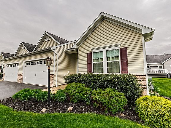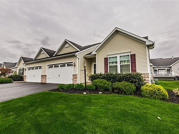 Enjoy 1st floor living in the heart of Webster at The Villas at Cambridge Court, a 55+ community! This 2009 built townhouse has been meticulously maintained for 9 years. Some carpets will need to be replaced due to wear over the years but that's all that you need to do to make this YOUR home. Features of the property include a 3 Bedroom 2 Full Bathroom unit. The master suite has it's own attached full bathroom with double sink as well as a walk in closet and a ceiling fan. In the kitchen all appliances stay including the washer and dryer in the adjacent mudroom, along with all the drapes and rods. Off the kitchen/dining area you have a slider leading to a nice deck for those warm summer days! 2 car garage, 8ft poured concrete basement and so much more! All you have to do is move right in!