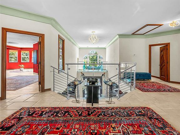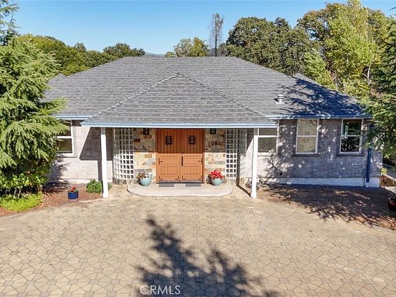 This distinctive luxury estate blends modern design with European chateau elegance, featuring twin turreted wings that give the home a castle-inspired presence. Spanning 3 parcels and over 2 acres, the property offers resort-style living with a salt water pool, hot tub, outdoor BBQ, and pizza oven. The large 3-car and RV/toy detached garages provide ample storage. Expansive paver driveways and open half-acre garden space add both beauty and function. Inside, a gourmet chef's kitchen with high-end appliances, a grand staircase, and formal office with pool views. The Home theater and pool table set the stage for fine living. This master suite boasts great natural lighting, enormous walk-in closet, and an oversized jetted tub. Stucco and stone exteriors, new LVP flooring throughout, 2 fireplaces, and an on-demand hot water enhance the comfort and style. Riparian water rights, a full backup generator, and Honeywell security system ensure peace of mind. With commercial zoning allowing mixed-use possibilities, this one-of-a-kind property offers the perfect balance of elegance, function, and opportunity. Live and work from home in style!