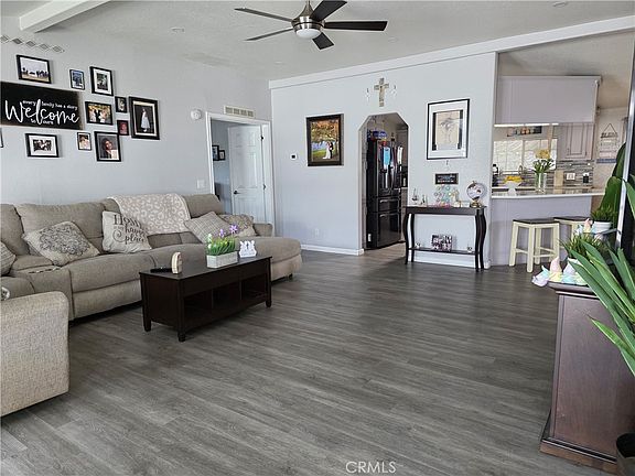 Welcome to the family friendly community of Crestmont Estates. This newly remodeled (2020/2021), absolutely turnkey, 3 bedroom 2 bath, triple wide home is located on the largest lot in the park. This lot offers both rear and side yards which include pavers and artificial grass, and are fully enclosed with newly installed vinyl fencing. As you walk along the beautifully landscaped path to the entry of your new home, you will first enter the large, newly constructed, covered porch. Upon entering your home, into your spacious family room, you will be mesmerized by the open concept style living with unlimited natural lighting from several brand new skylights throughout the home. Just off your family room is the master bedroom with retreat, and the master bathroom which offers a dual vanity and garden tub. You will find an additional family/living room towards the front of the home, just outside the 2 secondary bedrooms, which includes a beautiful wood burning fireplace with a brand new tile hearth, fireplace surround, and hand made, natural wood mantle. The large kitchen/dining area offers lots of storage (including a storage room just outside the laundry room). The kitchen was newly upgraded with quartz countertops, backsplash, and all new black stainless steel appliances, and the dining area includes built-in bench seating. Your large laundry room, just off of the kitchen, is spacious enough for a full size washer/dryer and a secondary refrigerator.