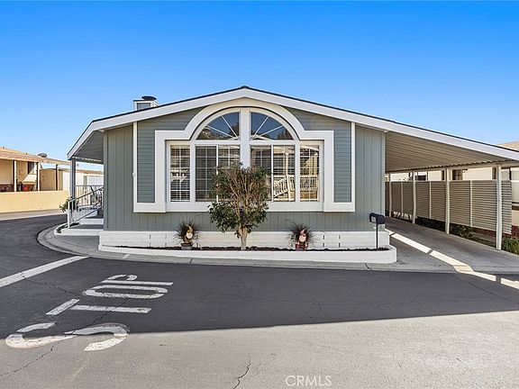 This beautiful home in Crestmont Estates is a corner lot and the only triple wide home in the community available to make your own. This 3 bedroom, 2 bathroom home has pride of ownership written all over it with updates throughout. It has new vinyl flooring, new carpet in bedrooms, newer roof, and new interior/exterior paint throughout to name a few. As you walk up to the home you cannot help but imagine yourself enjoying your morning coffee on your wood deck and covered patio. You are welcomed into the home with French doors that lead into a spacious formal living room with cathedral ceilings. Just off to the living room you have your first room that can serve as a bedroom/office. Next to that is a NEW/renovated kitchen, with recessed lighting, bright white cabinets, soft close drawers, quartz counter tops, new dishwasher, farm sink, dual temp oven, and breakfast bar perfect for your family gatherings. The kitchen opens up to a dining room and family room with cathedral ceilings. The focal point of the room are the large windows that stand almost floor to ceiling, bringing in natural light or a cool breeze as you unwind after a long day. For the chilly evenings you can enjoy your wood burning fireplace in the Family room. Just off to the kitchen is your laundry room, complete with counter space, cabinets, a pantry, a sink, and did I mention a space to hook up a refrigerator? This home offers two hookups for refrigerators; one in the laundry room and one in the kitchen! Laundry room has a door for easy access to your covered parking that can fit 3 cars. The covered carport has a privacy wall, an attached shed, and you can easily convert half of the parking space into a private yard with enough space to still park two cars. Towards the back of the home you have a full bathroom, second bedroom, and your spacious primary bedroom. The primary bedroom includes cathedral ceilings, a walk-in closet, and a spacious private bathroom. Primary bathroom includes a large walk in shower, soaking tub, linen closet, and dual sinks. In addition to this stunning turn key home, the Crestmont Estates community boast amenities. Amenities include a swimming pool, spa, clubhouse with a full size kitchen and a billiard room perfect for your private events. The city of Brea offers award winning schools and plenty of places for entertainment, dining, and shopping. You will not want to miss the opportunity to call this place home. SELLER WILL PAY FIRST MONTH SPACE RENT.