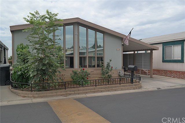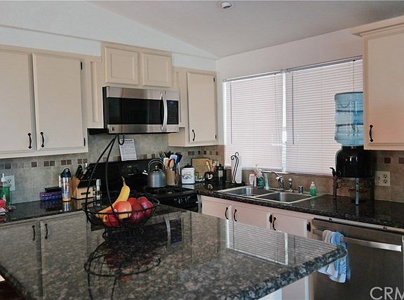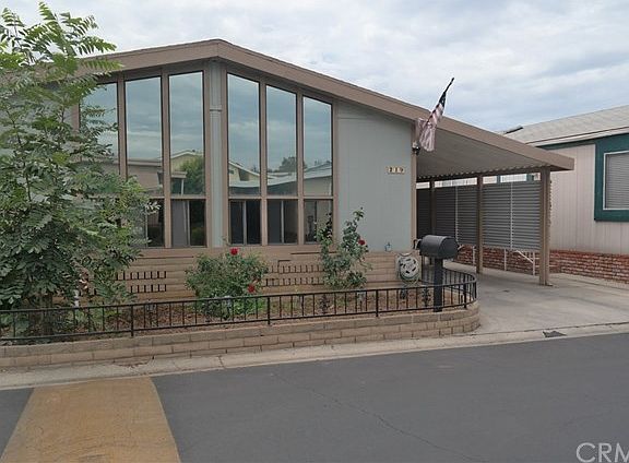 Beautiful bright and open floor plan. 2 bedrooms, 2 full bathrooms well maintained home offering vaulted ceilings, large open living room and dining room, updated kitchen with black and stainless steel appliances and plenty of cabinets. An indoor laundry room with storage space, large master bedroom with en-suite including a walk-in bathtub. 2nd bedroom has plenty of space with a large closet. You can enjoy a meal on the back deck while you look out over the city. The deck has a storage shed, and gas hookup. The carport accommodates 3 cars. Crestmont Estates is one of orange counties finest family friendly parks they has a clubhouse with pool and spa and best of all Brea Schools.