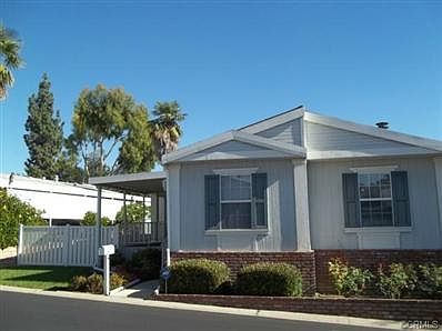 Back n the market. One of the few spaces in park that has enclosed side yard and large front porch. Nice 3bd/2ba, double and half wide mobile home with vaulted ceilings, extra large living room with sky light, open kitchen with walk in pantry, breakfast bar area and newer appliances, dining area, den with fireplace, spacious bedrooms with ceiling fans and mirror closest doors, oversized master bedroom with sitting area, two large walk in closets and master bath with separate shower stall and sunken bath tub. Indoor laundry room off kitchen with cabinets, central air and heat. Large carport with room for three cars, storage shed, sprinkler system with timer for fenced side yard, possible patio area behind home, fruit tree and vegetable garden, flower bed, and brick planter. Larger space with room for a garage. Owner recently had siding and fascia boards re-done and earthquake locks on home. Conveniently located near club house and pool. A must see, motivated seller.