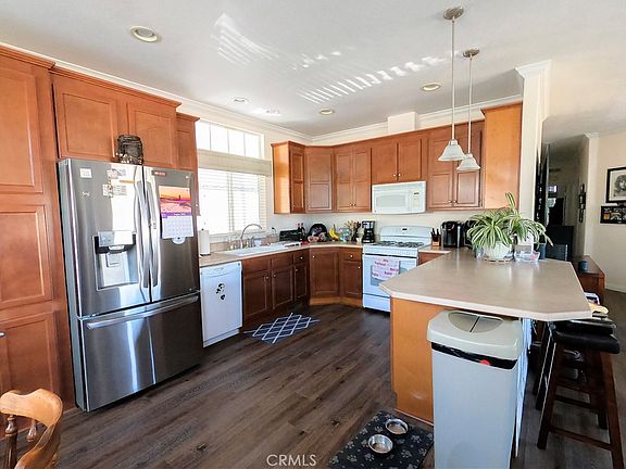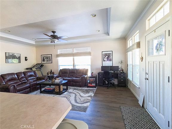 Recently Reduced and Priced To Sell....Crestmont Estates, is a sought-after All-Age community in the beautiful city of Brea. This model-like home is a 2010 Skyline with 3 bedrooms and 2 bathrooms, 1539 sq. ft. (approx.). The home is uniquely situated up on the hill and is on a corner lot. The entrance is from a large, covered front porch with weatherproof Trek decking. Once inside you are greeted with a large living room that opens to the large kitchen and dining area. The kitchen includes a dishwasher, a built-in microwave oven, and an oven/range. There are plenty of cabinets and the counter-space faces the living room so you can enjoy cooking and entertaining your guest and family. The bedrooms are all nicely sized with spacious closets. The master bedroom has an adjoining master bathroom with double vanity sinks and a walk-in shower. Additional interior home features: laminate flooring throughout with carpet in the bedrooms, ceiling fans, 2" wood blinds, crown molding, coffer ceiling in the living room, and recess lighting. Additional exterior home features: large shed wired with electricity, and built-in shelving, sprinkler system, large side, and front yard, large covered carport, installed perimeter piering/footings, air conditioner, and water heater (2 years). This is a must see, don't wait!