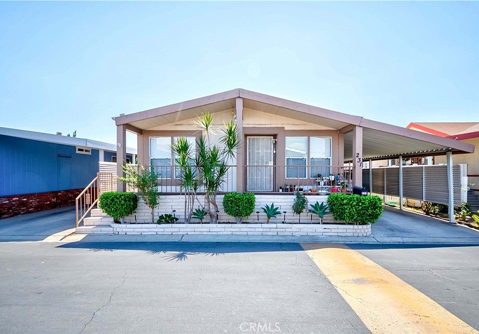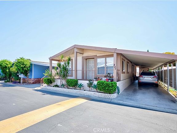Great location in a premier manufactured home park in city of Brea. This 3 bed room, 2 bath room home is very well cared with many upgrades around 2 years ago. Laminate flooring throughout. This home features an open floor plan with a large family room that transition into the dining and kitchen area. The kitchen has new granite counter top with breakfast bar. Spacious living room with a cute fire place. Master bedroom is separate and private from the other bed rooms. Laundry room is located kitchen area with many spacious storage for kitchen materials. Covered carport that can fit 3 cars. Club house and community pool are in a short walk. Very nice quiet neighborhood. Brea- Olinda school district.