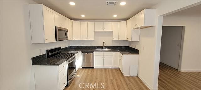 Newly renovated with a fresh, modern touch, this lovely apartment features a bright kitchen with new granite countertops, custom light fixtures, stainless steel appliances and a gas range. Relax in front of a wood burning Stone Veneer Fireplace. Enjoy laminate hardwood floors throughout, and plush new carpet in the generous size bedrooms. This unit has a beautiful flagstone face fireplace and newly renovated bathrooms. Cable TV hook-ups, a spacious private back patio, assigned parking space, and a 1 car garage with storage with a laundry room on site. Owner pays for water. Renter is responsible for gas and electric. No smoking allowed in or around premises. No Pets.