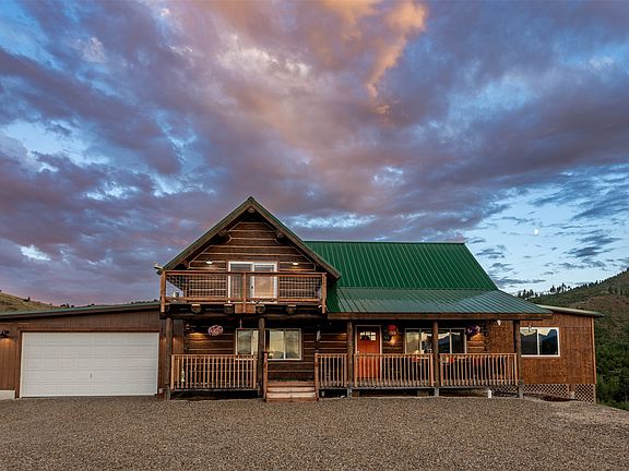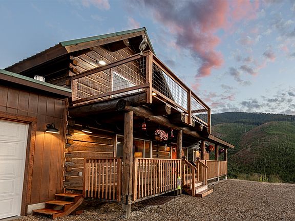 Nestled in the serene beauty of the Bitterroot Mountains. This inviting retreat on 20 private acres blends rustic charm with modern comfort boasting open-concept living creating an inviting atmosphere for relaxation or entertaining. The heart of the home has a sitting area, dining area, walk in pantry with a well-appointed kitchen, featuring acacia counters, stainless appliances, propane stove and large island perfect for culinary enthusiasts. Get comfortable in the family room and enjoy your favorite show. The bedroom on the main provides comfort and versatility for family or guests. Relax on the covered deck or entertain on the landscaped patio by the fire pit and soak up the stunning mountain views. The master suite upstairs offers a private oasis with amazing views, balcony, coffee bar, beautiful walk in tile shower and a separate, quiet place to sit and read. Embrace the beauty of Montana's natural surroundings. Call Kim Lendman at 406-531-0783 or your Real Estate professional.