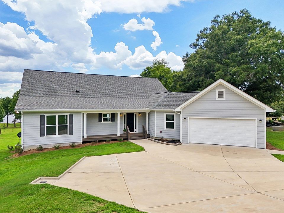 Lake Oconee lakefront home • Max dock • Covered deck and patio • Near Publix and Reynolds Lake Oconee • 3D virtual tour & floor plan included Experience lakeside living in this like-new 3BR/2BA ranch at 1051 Twin Rivers Road in the Twin Rivers area of Lake Oconee. Built in 2022, this property offers 2.08 acres with approximately 106 feet of main lake frontage, a gentle slope to the shoreline, and a private max dock ideal for swimming, boating, or kayaking. The single-level design features an open floor plan with hardwood and tile flooring, a bright living area with French doors to a covered deck, and panoramic lake views. The kitchen includes an island with breakfast bar, solid-surface counters, stainless-steel appliances, cooktop with vent hood, and pantry storage. The primary suite on the main level provides lake views, a large walk-in closet with built-in organization, and a bathroom with dual sinks, a separate shower, and solid-surface counters. Additional bedrooms feature lake or wooded views. The full terrace level is unfinished but plumbed for a full bath and pre-wired for electrical, offering the potential to double your living area. A gravel pad on the adjacent lot provides extra parking or space for a future garage, workshop, or boat/RV storage. Enjoy outdoor living with a covered porch, deck, and patio overlooking the lake—ideal for dining, relaxing, and sunset views across the water. The property also includes a 2-car attached garage, paved driveway, and Hardie board exterior. Utilities include community well water, septic system, and cable internet. Conveniently located within 1 mile of Publix, Starbucks, and Lake Oconee Village, and just minutes from Reynolds Lake Oconee golf courses, marinas, and dining. Approximately 10 minutes to I-20, offering easy access to Madison, Greensboro, and Atlanta. Includes 3D virtual tour and interactive floor plans for easy viewing. This home combines modern comfort, future expansion potential, and prime Lake Oconee frontage in a peaceful setting with no HOA fees. A rare opportunity for lakefront ownership in Greene County.