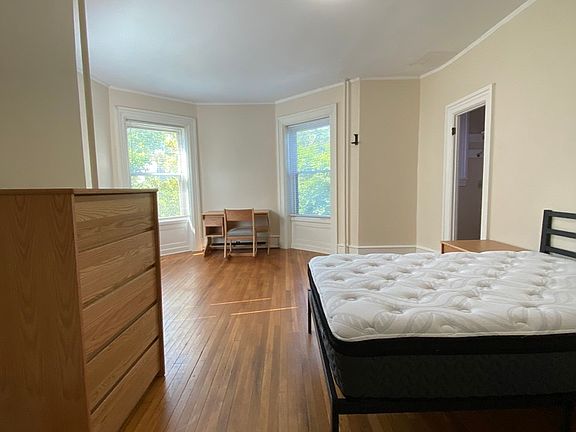 The kitchen, a true student's dream, features expansive granite countertops that offer ample space for food prep while leaving room for your essentials like a coffee maker and toaster. Adjacent to the kitchen, the charming butler pantry retains the elegance of the Victorian era and conveniently houses a refrigerator.
