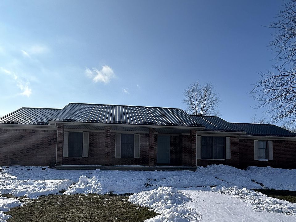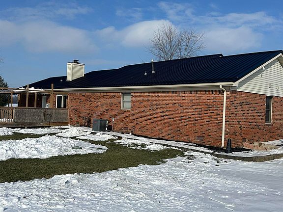 Amazing country living in this beautiful 3 bedroom, 2 full bath brick ranch on 3.5 acres! Brand new metal roof! Location makes getting to your favorite nearby destination a breeze. Located only 20 minutes from GM, 30 minutes to downtown Fort Wayne, 5 minutes to J.Roush State park and a short 25 minute drive to Salamonie Lake State Park. This freshly painted, beautifully updated home with open concept design has vaulted ceilings in the living room and kitchen, as well as a beautiful brick wood- burning fireplace. The extra-large Master bedroom features two incredible walk-in closets. Recent upgrades include new metal roof w/ snow guards and transferable warranty. New “Pergo” waterproof luxury vinyl plank flooring and carpet throughout the home. Additional home features include the large 2 car attached garage, huge carport and oversized shed/portable garage for all your ATV, boat and storage needs. The back yard adds so much to your living and entertaining space with an awesome covered grilling deck, a dining deck and a massive firepit in the side yard!! Furnace, central air and sump pump were all installed within the last 7 years.