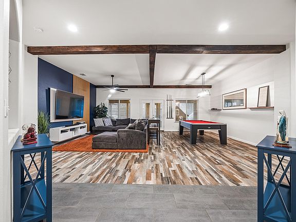 Escape to your tropical outdoor oasis with a sunroom, large pool, artificial turf for low maintenance, and a pergola with additional lounging space. With owned solar, a 3-car garage, this home truly has it all—comfort, style, and outdoor paradise!